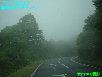 【道】磐梯山ゴールドライン いきなり東北。福島県です。とりあえず、バンザイしてください。ゴールドラインというからには、おそらく道のどこかが金色なのだと思いますが、残念ながら霧のために判別できませんでした。 |
