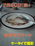 【食】米沢牛 山形県の米沢市。写真は「明星(あかぼし)」のステーキ『フィレ肉のコショウ風味』(130gで4,000円+セットメニュー)です。写真から判別できるかどうか分かりませんが、とっても柔らかい肉でした。 |