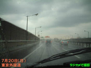 【道】東京外環道 いつの間にか東北の旅を放棄しているのがマズかったのか、雨が降ってきました。どしゃぶりです。 |