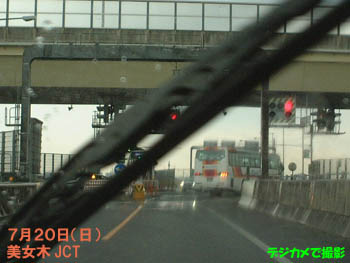【道】美女木ジャンクション 高速道路なのに信号がある!!という美女木ジャンクションです。ワイパーが邪魔ですが、雨が降っていたことを考慮すると、誰もが仕方の無いことだと思いますよね。 |