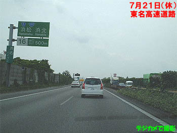 【道】東名高速道路 雨が止みました。どうやら神様は関係なかったようです。浜松の文字を見ると、帰ってきたなぁという気持ちになってきました。 |