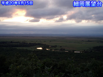ちょっと雲が多いけど、夕暮れの釧路湿原です。写真では十分お伝えできないかもしれませんが、きれいな風景が広がっていました。 |