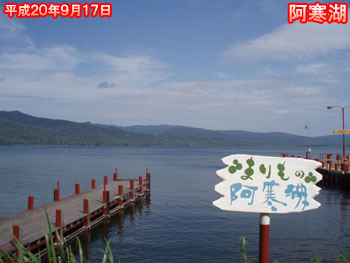 というわけで、雨の合間の阿寒湖。雨は降ったり止んだりです。降ってるときにお土産を探索。止んだら外へ。『俺らが外に出ると、雨が止むよね。やっぱり、晴れ男と晴れ女だから・・・』 |