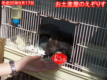 お気に入りの逸品を買ったら、店の前のえぞりすに餌をあげるサービスが。ほら!食え! |