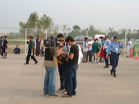 インタビューを受けてる人も。 俺にも聞いてくれればいいのに・・・。「別に、どっちが勝ってもいいと思いますよ。まぁ、両チームともそれなりに頑張って欲しいですね。」とか答えたかった。。。 |