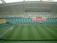 スタンドに入る。 キックオフは午後8時半で、写真を撮った時刻は午後6時前。早く着いたので、周りの様子はこんなもんです。 |