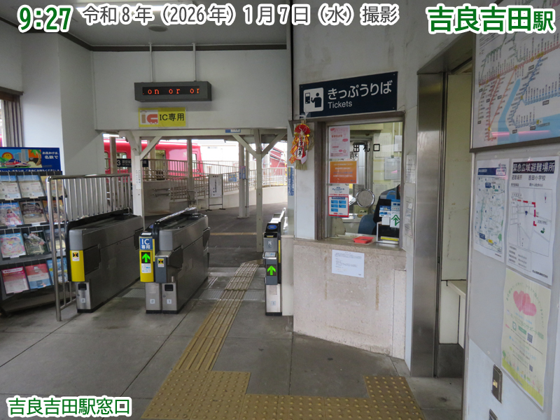 さて、吉良吉田駅の硬券入場券を購入するため窓口に向かいます。並んでいる人は多いかな、31分発の蒲郡行きに間に合うかな。