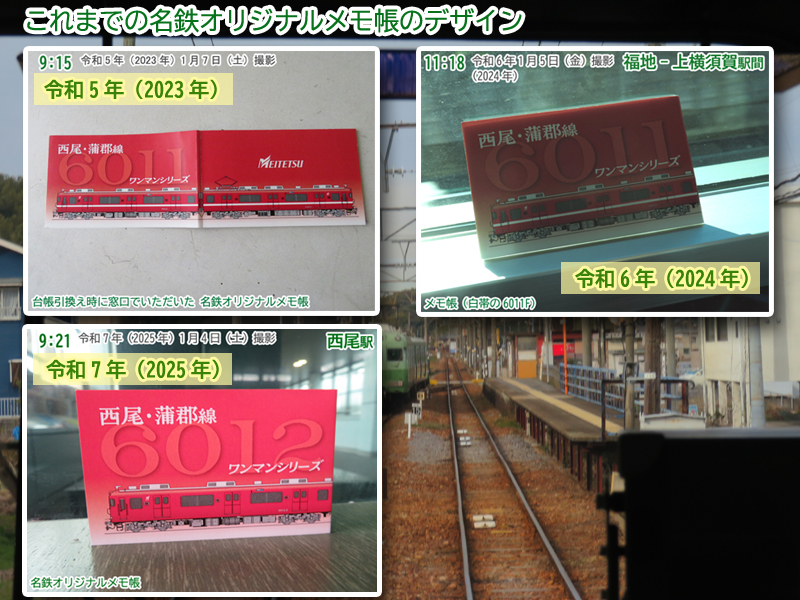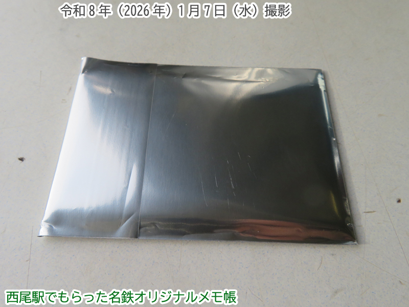さて、移動の途中ですが、ひとつ確認をさせてください。西尾駅では、台帳とともに名鉄オリジナルメモ帳もいただきました。