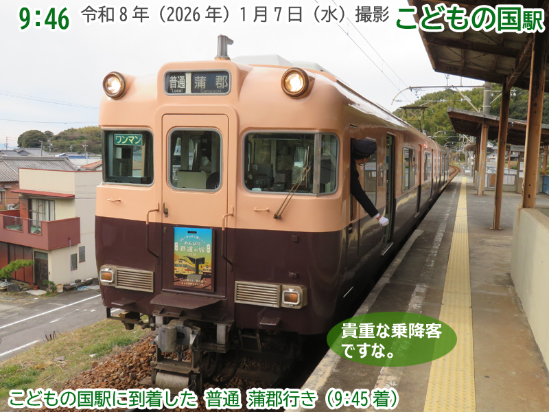 チョコレートツートンの蒲郡行きはこどもの国駅に到着しました。