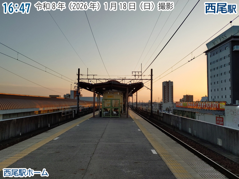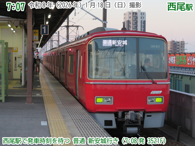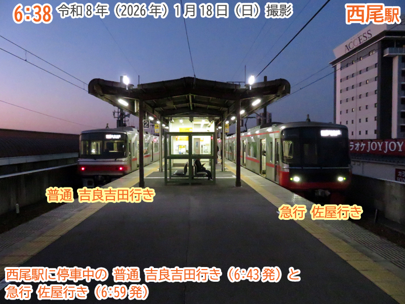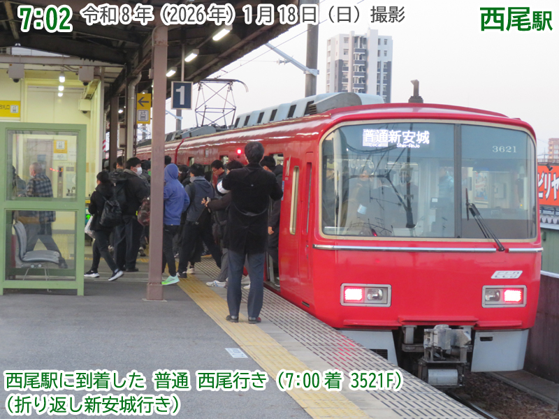 おはようございます。1月18日の日曜日、朝6時38分の西尾駅です。今日はにしおマラソンの開催日。多くの人が西尾線を利用します。