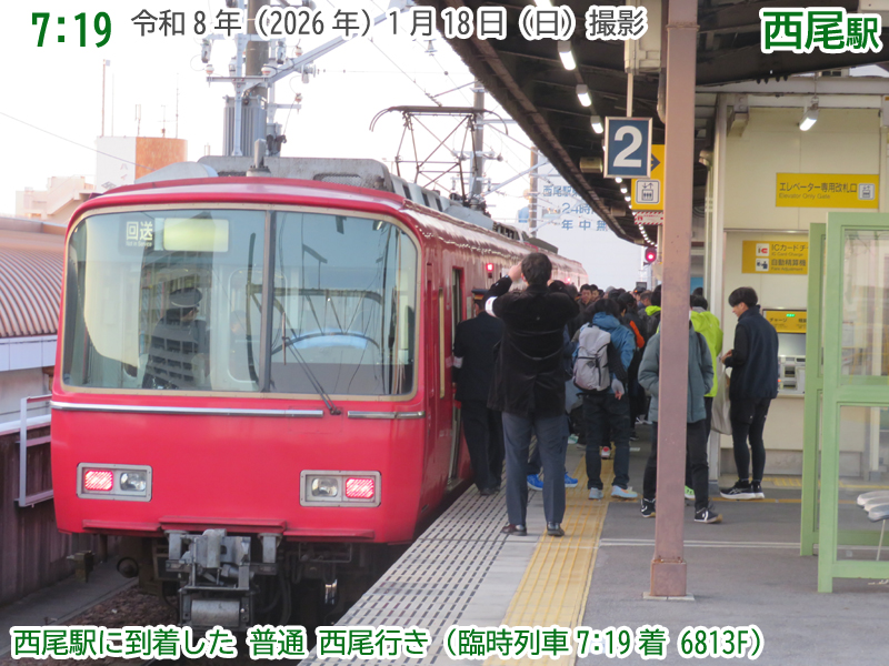 多客への対応のため、今日は朝に新安城発普通西尾行きの臨時列車が1本運行され、午後に西尾始発の普通新安城行きのうち4本が吉良吉田始発に区間延長されます。また、2両編成から4両編成に増強される列車もあります。